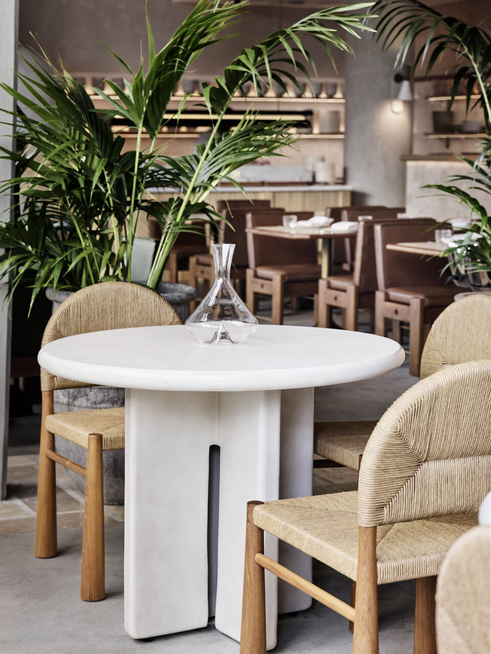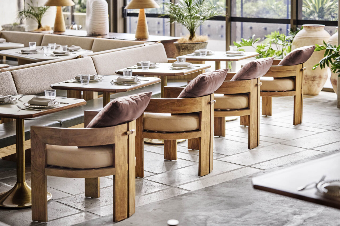 Designed exclusively for Mondrian’s Villas by our designer Joshua Abel, this chair combines contemporary style with ergonomic comfort. The blend of natural and industrial materials creates a sleek yet inviting character, perfectly suited to upscale dining environments.